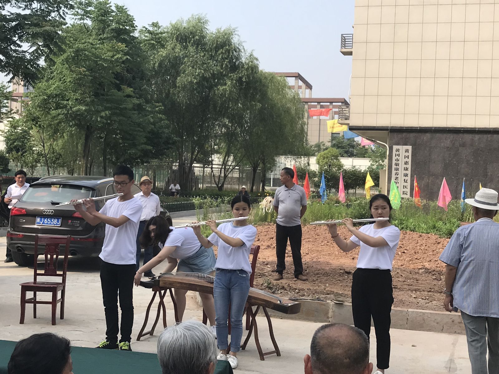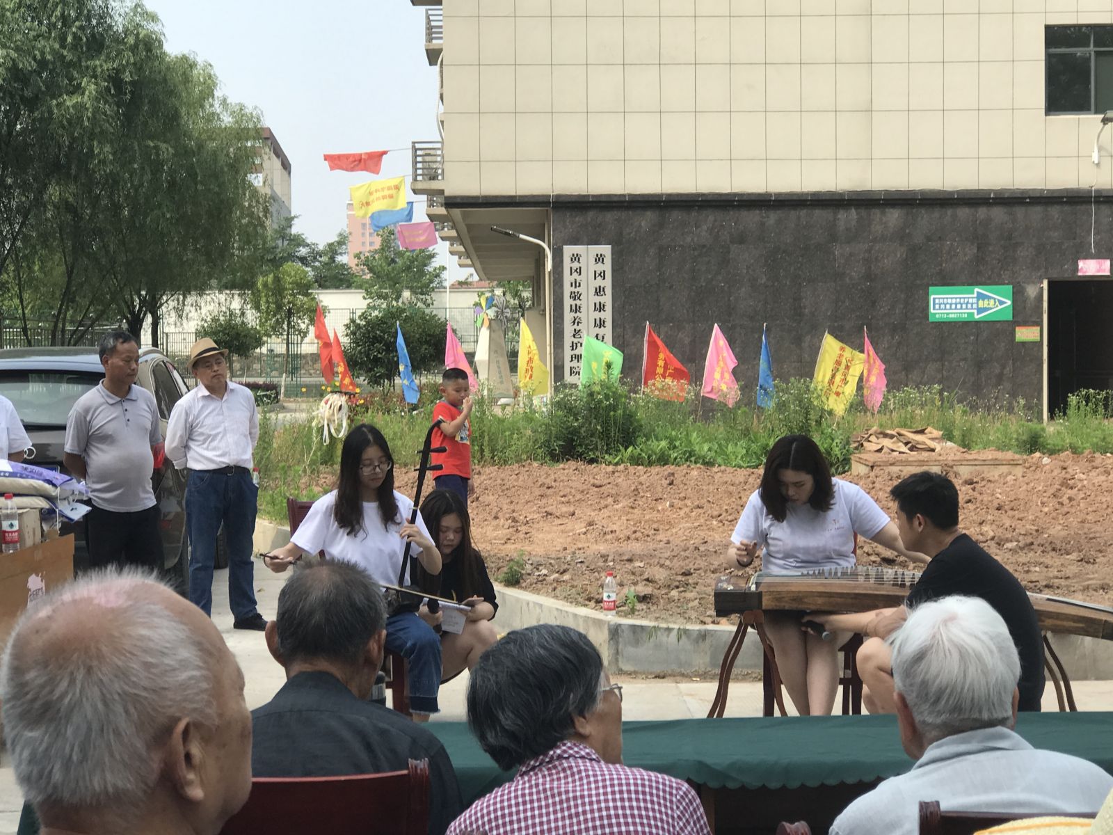 演出以如同山涧泉鸣,似环佩铃响的古筝琴声与委婉清丽的二胡声合奏出的《碎雨江南》为开场;之后一首长笛合奏《美丽的神话》,让观众们陶醉向往;接下来的古筝合奏《纺织忙》更是描绘了一张迷人的画卷;扬琴合奏西游记插曲《女儿情》让老人们连连拍手称赞,这一曲勾起了他们太多的回忆;接下来一首古筝合奏《大王叫我来巡山》让人感到轻松愉快,爷爷奶奶听得很是起劲;还有《青花瓷》杨琴与古筝合奏,动人心弦;最后压轴好戏,两首小提琴独奏《斯卡波罗集市》与《夜半小夜曲》,琴声悠扬,情感丰富,更是令人久久不能沉浸在音乐中不能自拔,将整个活动推上高潮。