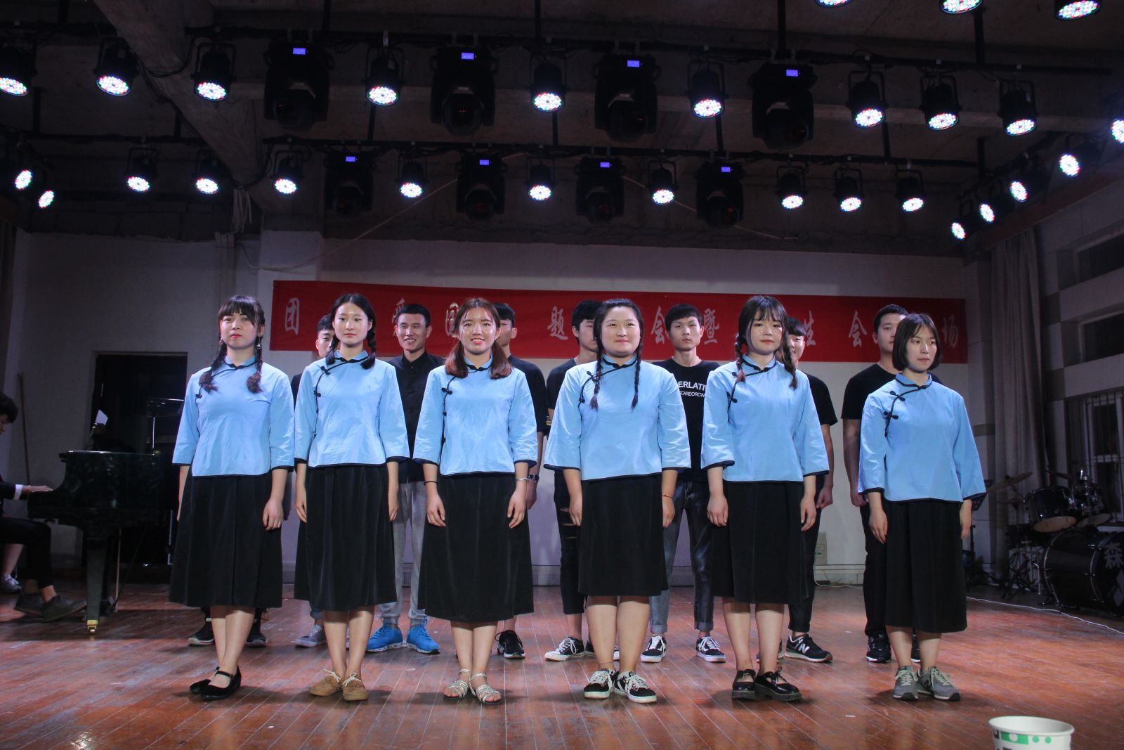 节目一开始以健美操开场,调动了全场活跃的气氛。接下来的歌曲《长江之歌》和民乐合奏《凉凉》也逐渐让大家开始进入和享受这场盛宴之中。相声表演《学冠军》引起全场阵阵掌声和笑声。接下来的舞蹈串烧和走秀表演更是将全场氛围推向高潮。歌曲串烧,朗诵,古筝三重奏等节目的穿插,也使本次专场表演丰富多彩。晚会最后以员工会全体成员歌唱《校歌》结束,充分诠释了爱校爱国的主题思想。