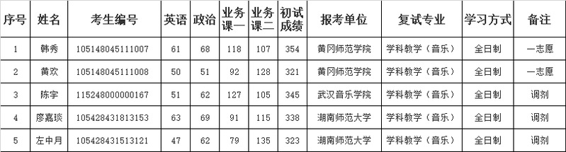 英国威廉希尔WilliamHill学科教学(音乐)专业2018年硕士研究生复试名单