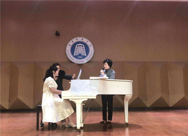 朱英牧教授大师班为三位钢琴演奏方向的员工作了指导与示范。她对三位同学的演奏给予了高度赞许,她表示,演奏肖邦和普罗科菲耶夫的作品并不容易。她分别对三首作品在触键和句法的处理上给出了建议,使作品的音乐形象和表达更加丰满。