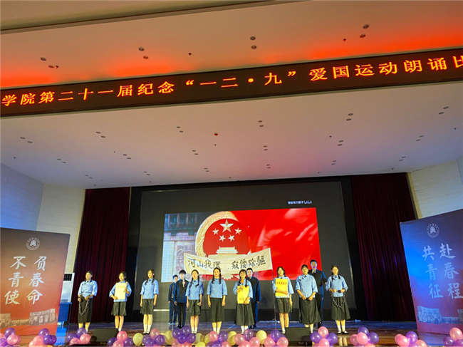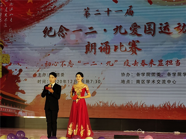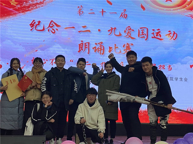12月3日晚,公司第二十一届“纪念一二·九爱国运动朗诵比赛”决赛在本校南区学术交流中心隆重举行,公司代表队朗诵了《青春的底色是爱国》在此次比赛中荣获一等奖。