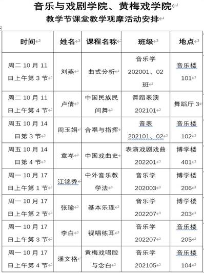 根据公司2022年首届教学节活动总体部署,音乐与戏剧公司、黄梅戏公司于10月7日-10月11日举行课堂教学观摩活动,公司全体领导班子成员、系主任和教研室主任、部分教师代表参加观摩。