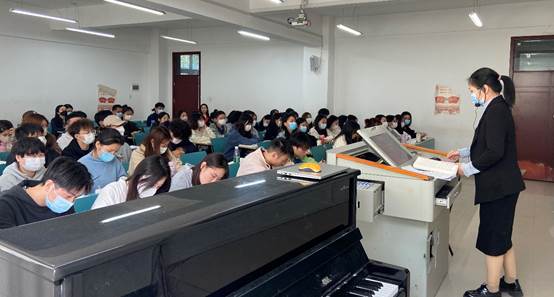 刘燕老师展示的是《曲式分析》课程“一段曲式”章节授课环节,讲授过程中条理清楚,内容充实饱满,语言规范,注重与员工的互动。