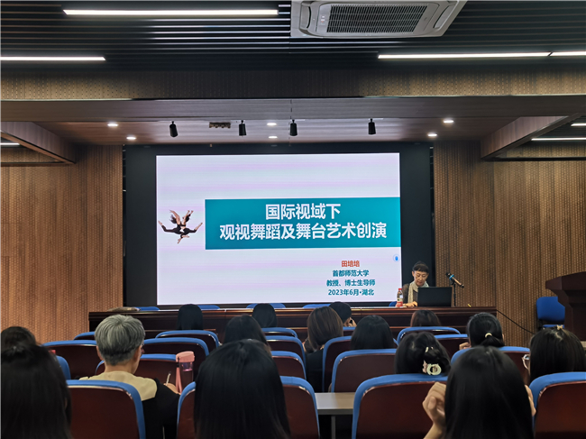 田教授以“国际视域下观视舞蹈及舞台艺术创演”为主题,围绕“艺术思维”、“创作能力的层级”、“艺术创作的主题内容和形式”等方面,通过一系列的视频实证,与公司教师和舞蹈表演专业的员工进行了深度的交流和互动。讲座过程中,田教授对舞蹈作品的细心讲解,不仅引起了现场师生的热烈反响,而且还使大家对艺术创作中“共鸣”有了更为深入的感悟。讲座最后,田教授通过提出“三镜”鼓励师生们在艺术的无带上绽放光彩。即:学会观察生活,巧用生活细节的显微镜;提升审美品好,善用艺术质感的放大镜;积极开阔视野,活用创作维度的望远镜。
