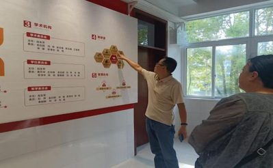 会议第四项,在杨丽英老师、王娜娜老师的陪同下,党委书记黄开宋、党委副书记王永胜带领各位员工家长参观公司“一廊三馆”,深入了解公司组织机构与办学特色,全面展示公司领导班子与员工风采。